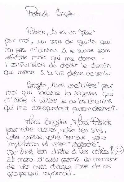 Ce stage chez vous et avec vous me parait être aujourd’hui la chose la plus importante qu’il me soit arrivé de toute ma vie… Je vous embrasse,